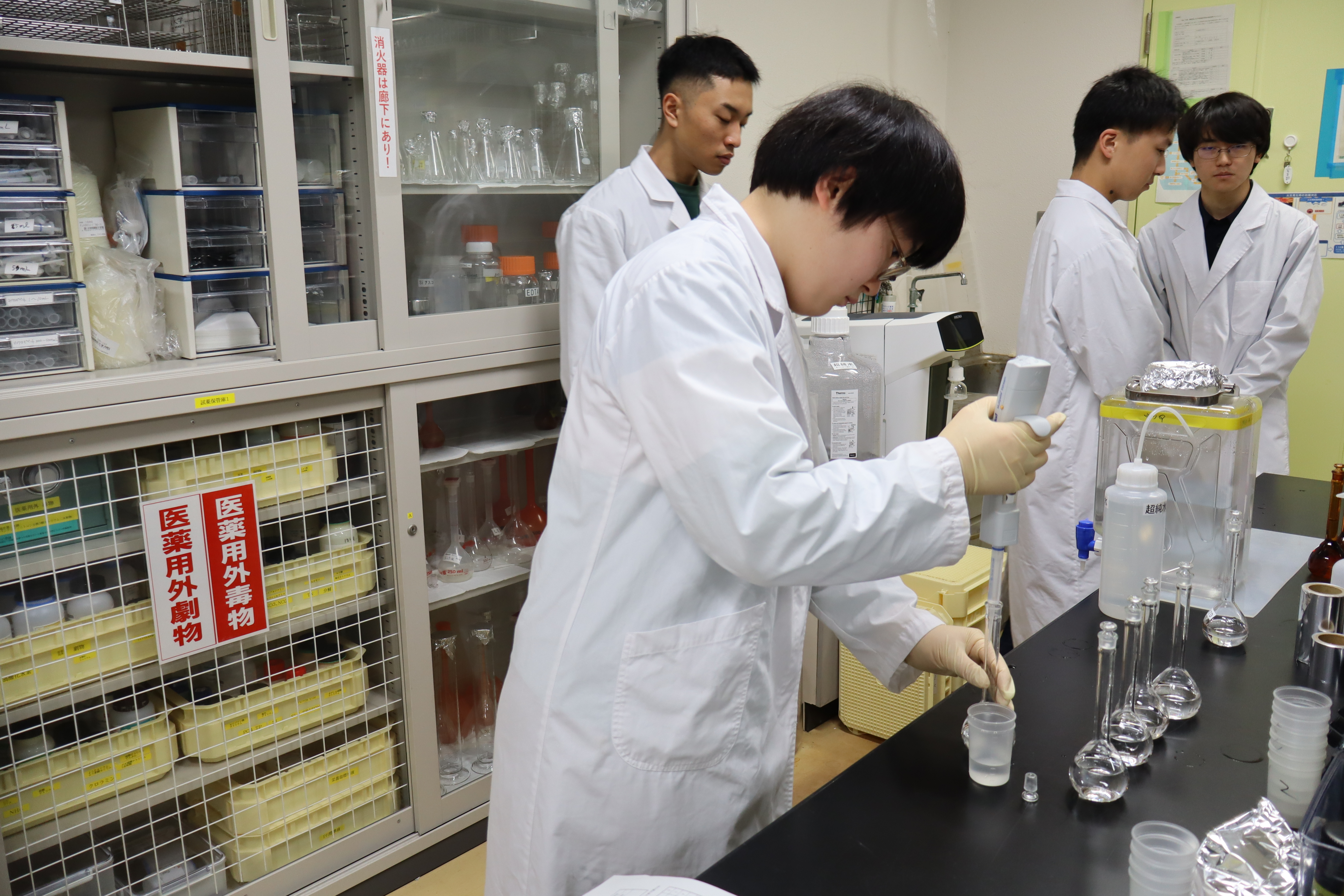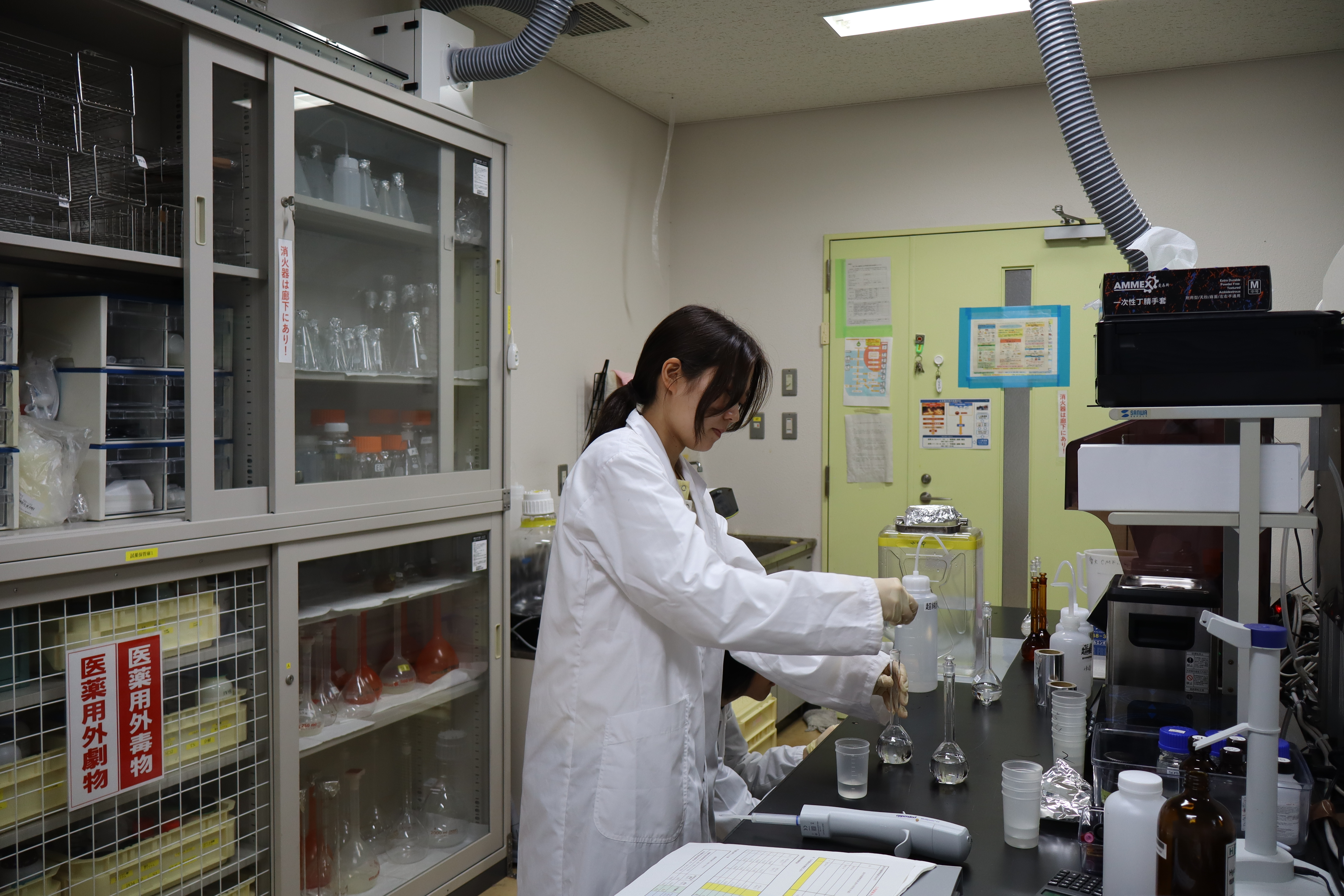 技術専門職員,大西さんのご指導のもと,試薬づくりや分析を行いました.